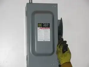 Поднимите желтую защиту, чтобы разблокировать панель доступа к абразивному кругу.