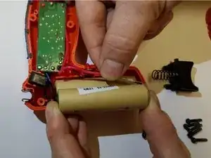 Найдите литий-ионный аккумулятор 18650-2 в основании дрели.