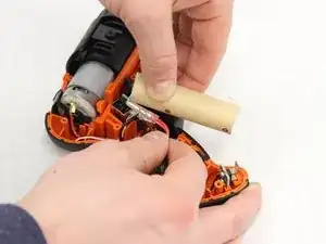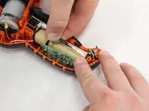 Рекомендуется сначала отключить верхний разъем аккумулятора, как показано на третьем изображении, так как это будет первым шагом при замене любого компонента этого отвертки.