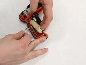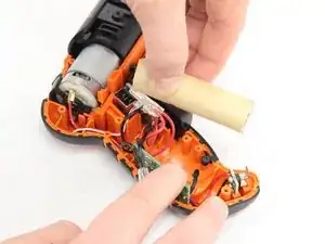 Найдите аккумулятор. Цилиндр, покрытый картоном, — это перезаряжаемый аккумулятор.