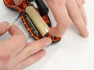 Аккуратно приподнимите конец аккумулятора из пластикового корпуса.