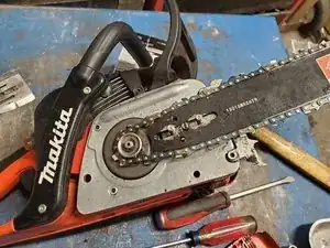 Установите шину и цепь, затем установите крышку и фланцевые гайки 1/2 дюйма