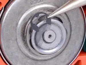 Используйте небольшой плоский отвертку или плоскогубцы для стопорных колец, чтобы приподнять и снять стопорное кольцо с оси.