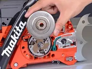 Следуйте этому руководству, чтобы снять и заменить изношенный барабан сцепления цепной пилы Makita.