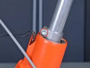 Используйте отвертку Torx T25, чтобы ослабить (но не снимать) два винта, стягивающих основной трубный узел с рукояткой управления.