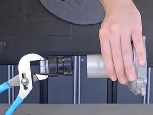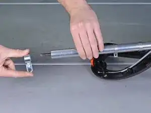 Сдвиньте и снимите оба зажима, которые держали рукоятку на трубке.