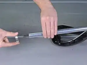 Используйте отвертку Torx T25, чтобы ослабить (но не снимать) винт, фиксирующий хомут вокруг трубки рукоятки.
