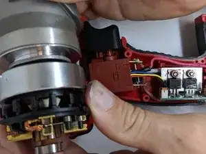 Вставьте лопатку между одной из угольных щеток и электрическим мотором, чтобы помочь сжать пружину.