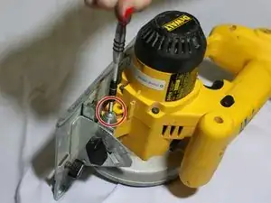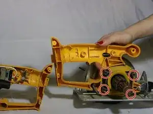 Используя винт с головкой T-15, отвинтите 5 шестигранных винтов. Эти винты расположены на противоположной стороне пилы от предыдущего шага.