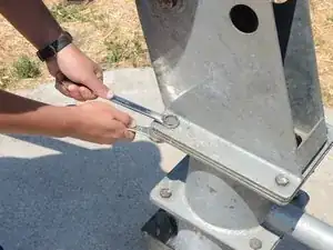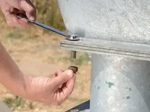 Используйте один ключ на болте и другой на гайке снизу. Зафиксируйте болт и ослабьте гайку.