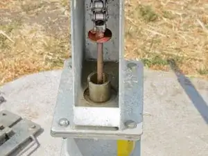 Установите распорную втулку вокруг штока насоса под приподнятой цепью так, чтобы скошенная сторона была внизу, а плоская сторона — наверху.