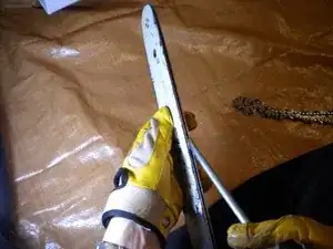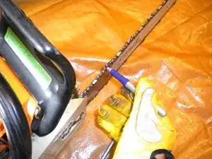 Установите шину и цепь обратно на пилу.