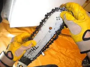 Внимание: Зубья цепи острые. Надевайте защитные перчатки на протяжении всей процедуры.