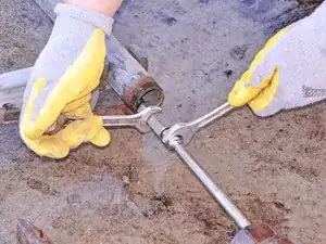 Удерживайте ключ на муфте неподвижно, в то время как ключ на стояке поворачивайте против часовой стрелки, пока труба не освободится.