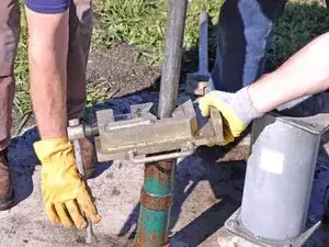 Отделите цилиндр насоса от трубы и штанги, используя два разводных ключа.