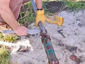 Отведите верхнюю трубу от насоса и положите её в стороне, на бок.