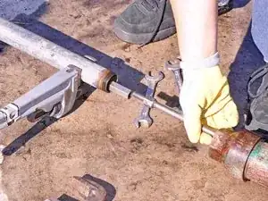 Двое работников, используя газовые ключи, должны приложить небольшое усилие вверх, пока оператор зажима основания ослабляет его.