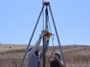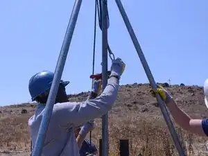 Удалите первый участок основного подъемника, поднимая его прямо вверх, поддерживая верхнюю часть участка и удерживая трубу в поддерживающем слоте на верхней части треноги.
