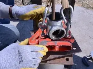 Держите газовый ключ на несколько сантиметров выше стыка на этом этапе.