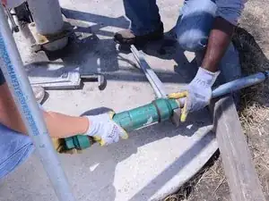 Используя два газовых ключа, открутите насосный стержень от оставшейся части.