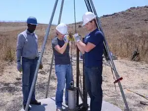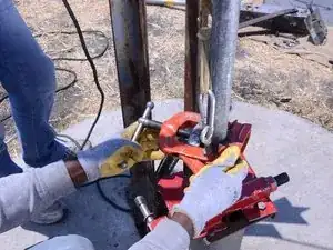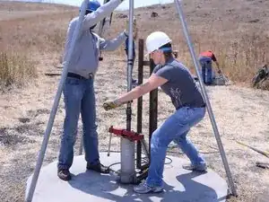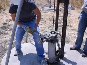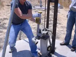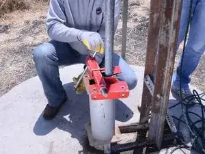 Этот насос использует трехножку с блоком и блокировкой для подъема главной колонны. Также можно использовать C-ключи для подъема главной колонны.