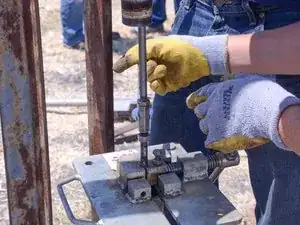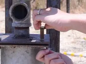 Прикрепите T-ручку к оставшемуся насосному стержню.