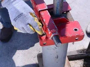 Поддерживая верхнюю часть трубы, аккуратно снимите зажим лифта с трубы.