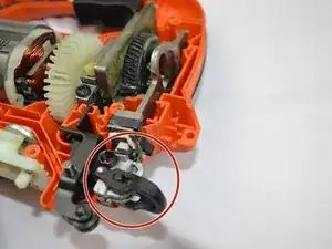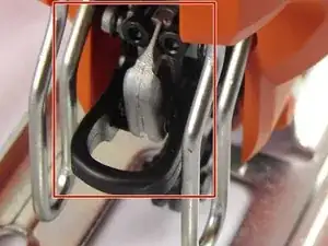 Используйте отвертку, чтобы удалить первый винт, крепящий основание к лобзику.