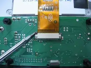 Ослабьте разъём дисплея, нажав на небольшие коричневые выступы с обеих сторон разъёма с помощью лопатки или аналогичного инструмента.