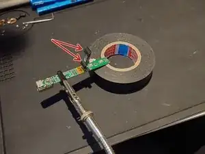 Работа будет проще, если плата зажата в помощнике для пайки с мягким покрытием зажимов или в маленьких тисках. Однако не повредите компоненты на плате.