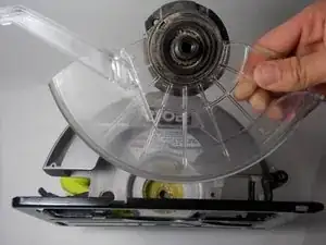 Снимите сборку опоры нижнего защитного кожуха с остальной части пилы.
