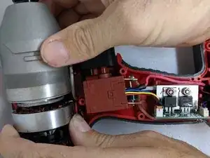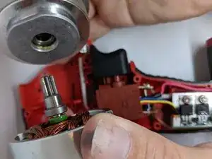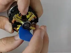 Вставьте открывающий пинцет между одной из угольных щеток и электрическим мотором, чтобы помочь сжать пружину.