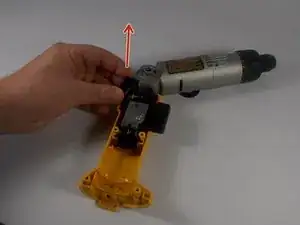 Найдите переключатель на верхней части дрели прямо перед шарниром сгиба.