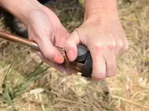 Отложите шток в сторону, следя за тем, чтобы клапаны оставались чистыми и не касались земли.