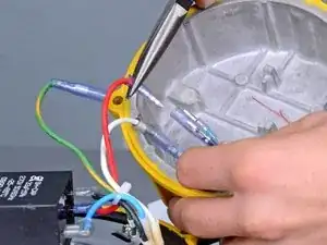 Используйте узкогубцы, чтобы отсоединить штекерные разъединители красного и белого силовых проводов.