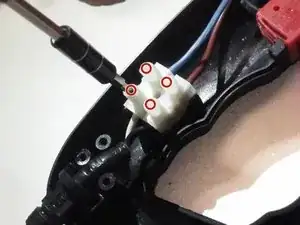 Ослабьте четыре винта на соединителе проводов с помощью плоской отвёртки 2,5.