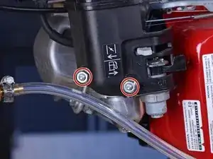 Используйте ключ на 10 мм, чтобы снять две гайки, крепящие патрубок воздушного фильтра к резьбовым шпилькам карбюратора.