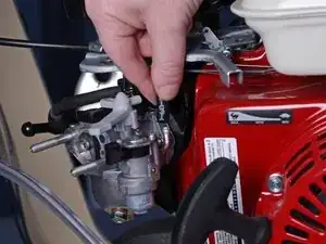 Возьмитесь за пружину возврата дросселя и поднимите её вверх, чтобы снять с карбюратора.