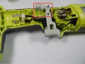 Поднимая этот триггер и пружину из рукояти, вы одновременно снимете чёрный переключатель с его двух опорных стоек.