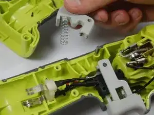 При сборке не забудьте удерживать пружину внутри основного триггера и прижатой к скобе, видимой на втором из прилагаемых фото.