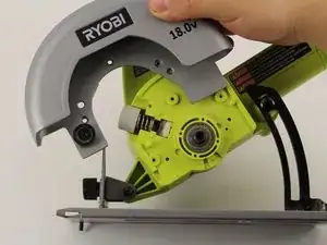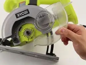 Снимите металлический кожух лезвия с корпуса Ryobi P501G.