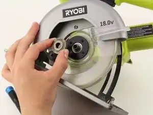Открутите против часовой стрелки и снимите подшипник в центре, соединяющий лезвие с двигателем. Это также позволит снять защитный кожух лезвия.