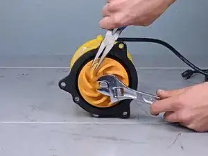 Удерживая крыльчатку, используйте разводной ключ, чтобы ослабить гайку мешалки, фиксирующую крыльчатку к корпусу.