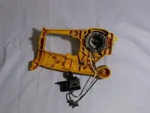 От курка отходят чёрный и белый провода. Возьмите курок обеими руками: одной — за пластиковую часть курка, другой — за пластик рядом с серебристой металлической деталью.