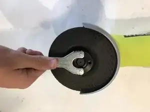 Снимите гайку зажима с верхней части диска с помощью ключа, который находится внутри ручки.