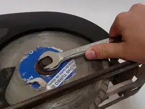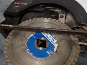 Хотя многие винты отвинчиваются по часовой стрелке, винт с шестигранной головкой на этой круговой пиле отвинчивается против часовой стрелки.