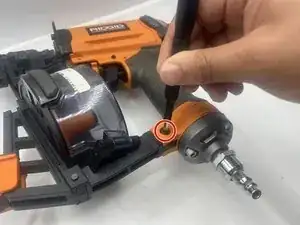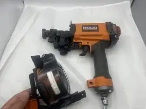 Если магазин пневматического пистолета для катушечных гвоздей Ridgid R175RNE треснул или по какой-либо причине больше не может удерживать гвозди, следуйте данному руководству, чтобы заменить магазин.