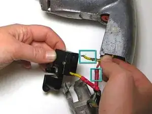 Вытяните провода из спускового крючка. Это может потребовать некоторых усилий.