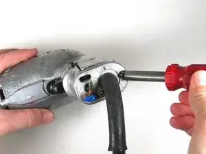 Используйте гаечный ключ, чтобы удалить винт длиной 0.5" с нижней части ручки.