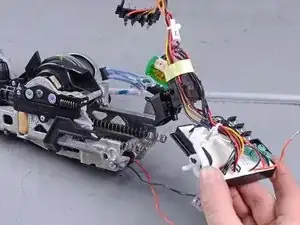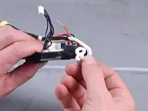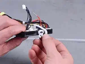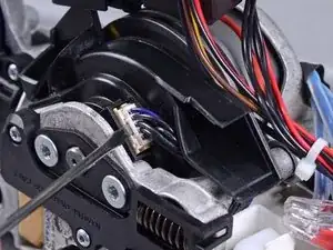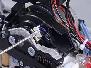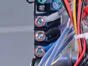 Используйте отвёртку T10, чтобы удалить три винта, фиксирующие моторные провода.